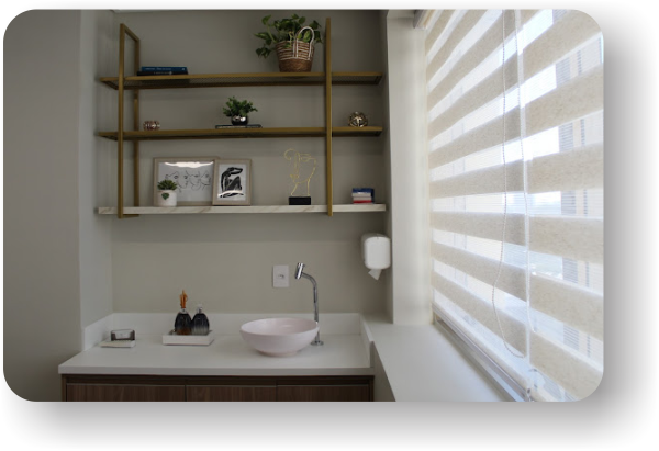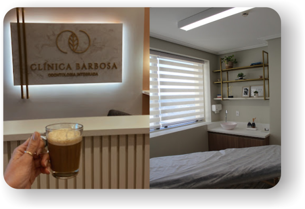 Nossa clínica foi pensada para o seu conforto: recepção agradável, café e água à disposição, música ambiente e uma decoração planejada para transmitir tranquilidade. Além disso, nossa sala de atendimento conta com aromaterapia para proporcionar ainda mais relaxamento.